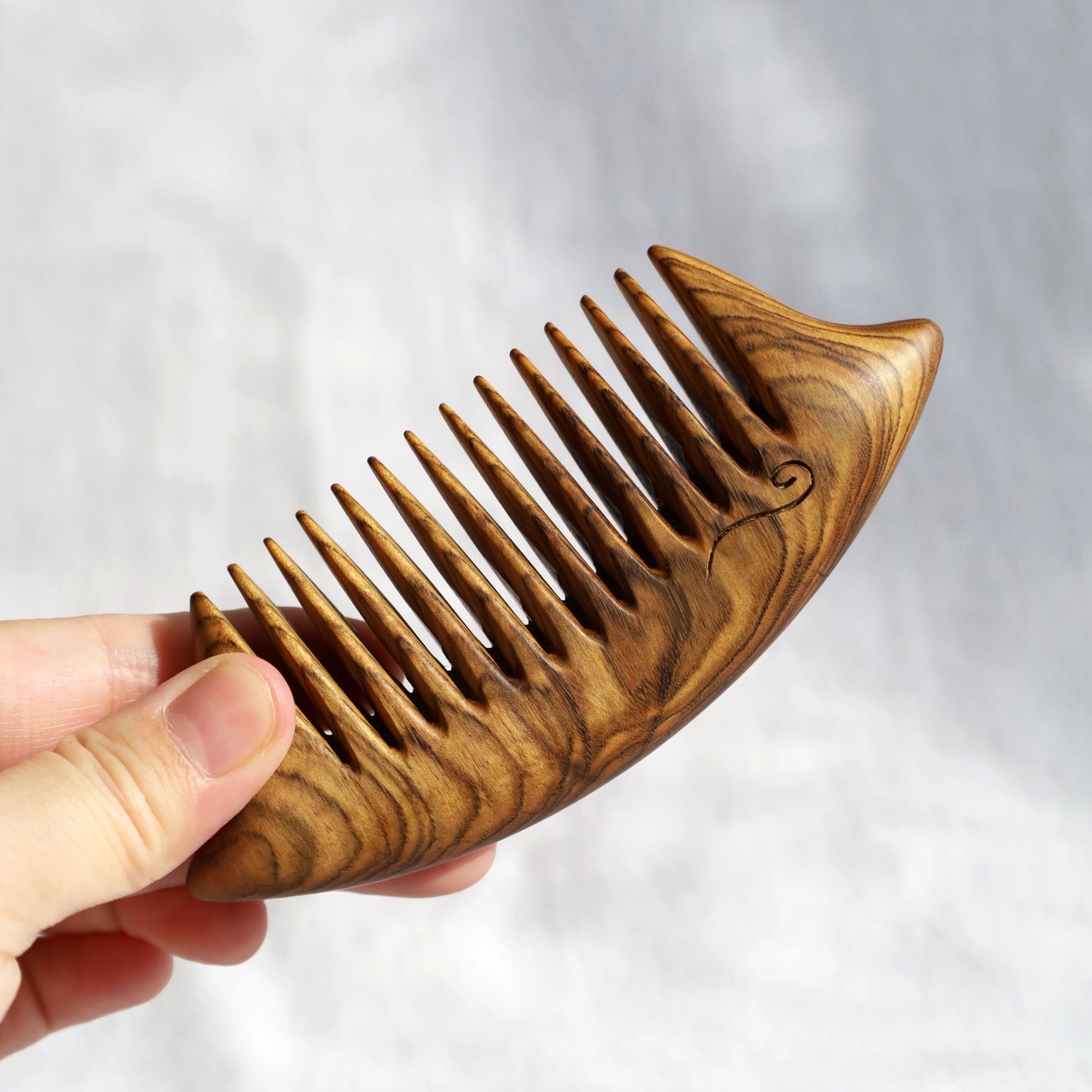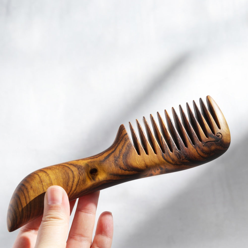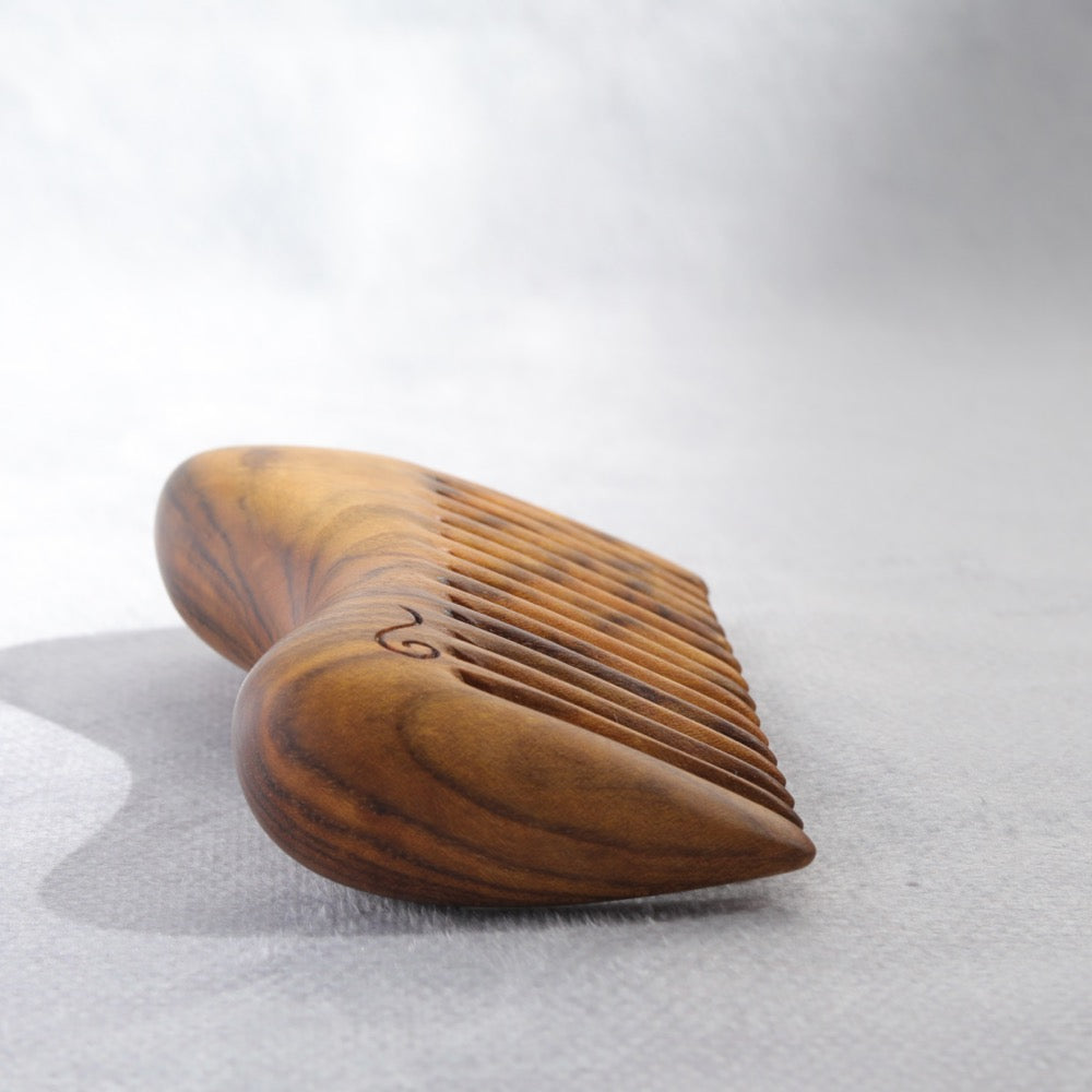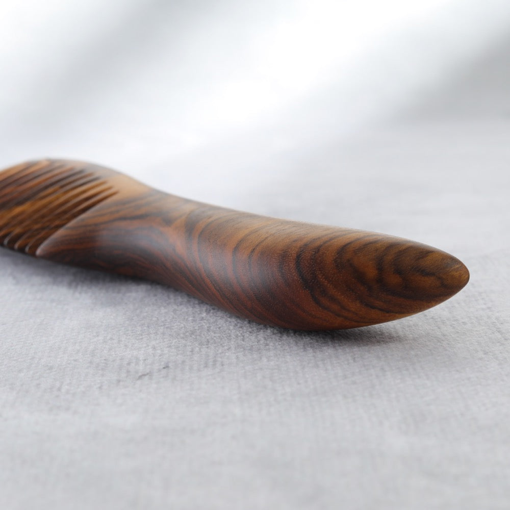 Made from rare natural woods, these simple beautiful wood combs have multiple functions of combing and massaging. Their skillfully handmade ends effectively activate pressure points without scraping the scalp.