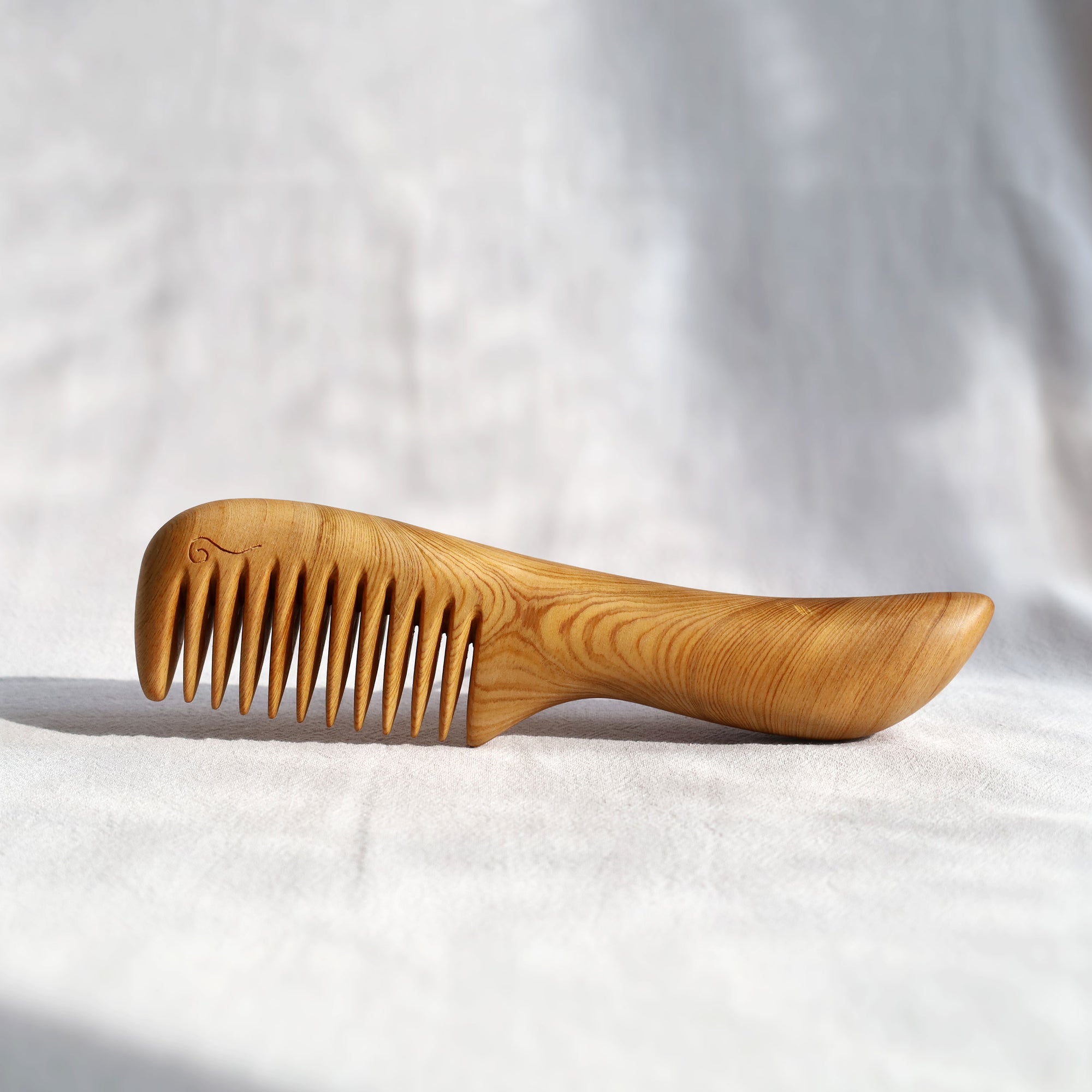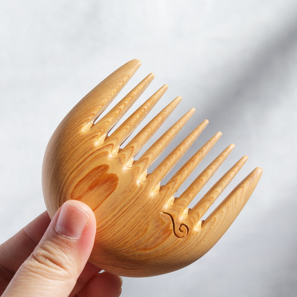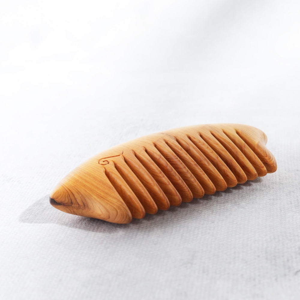 Made from rare natural woods, these simple beautiful wood combs have multiple functions of combing and massaging. Their skillfully handmade ends effectively activate pressure points without scraping the scalp.
