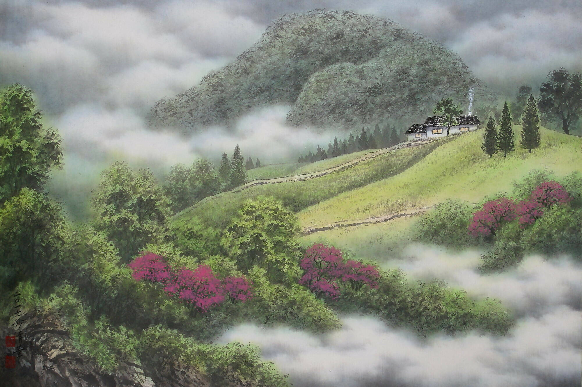 Signature: Hand-signed and personal seal of artist + year on lower left corner