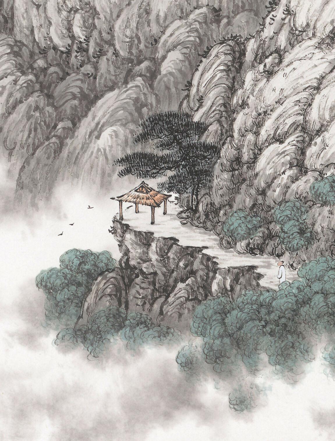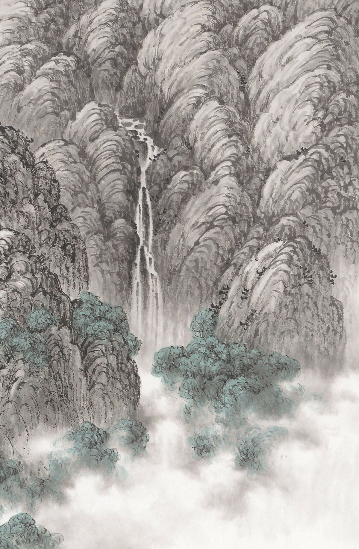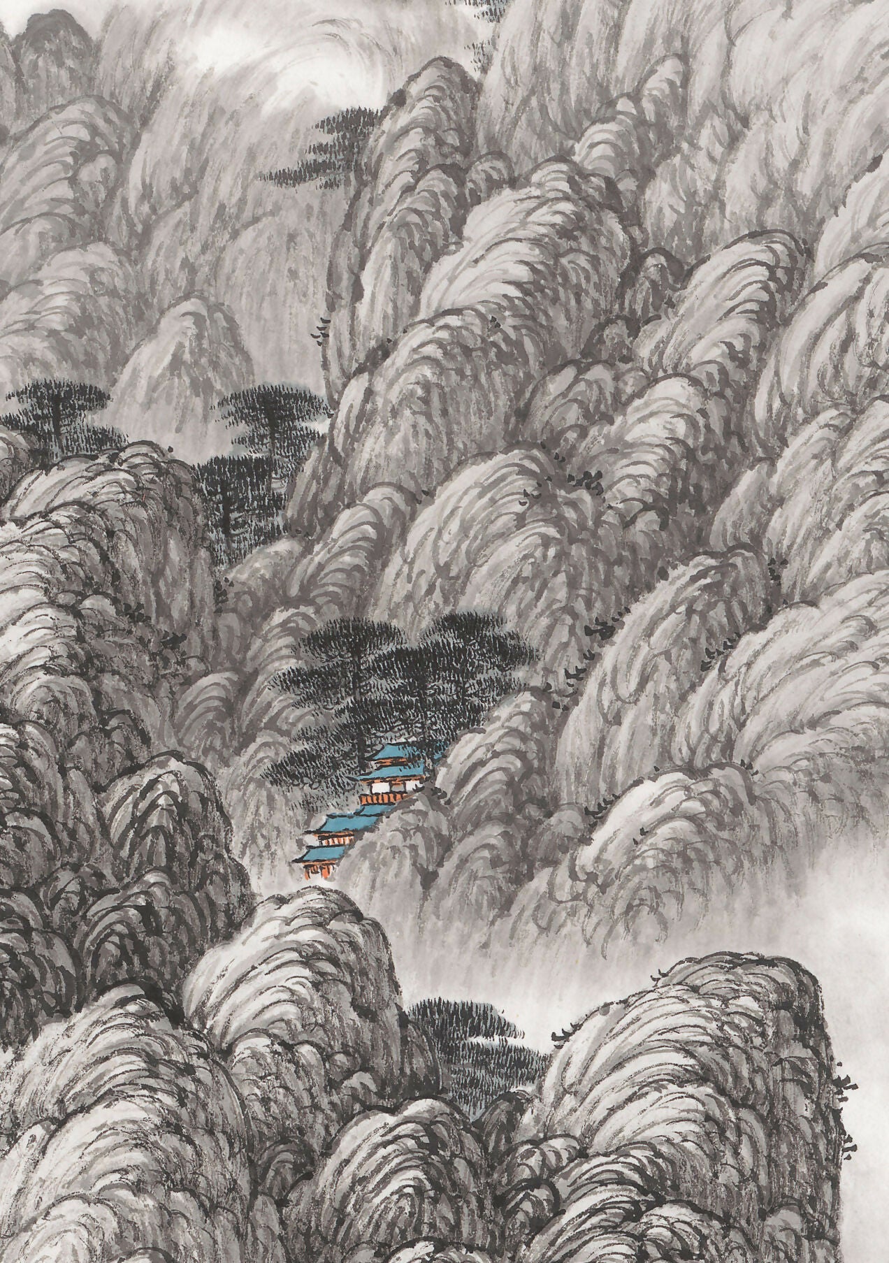 As we delve into the genius of this ink painting, we become engulfed by the expansive swell of the sea of clouds. Its ceaseless motion stretches endlessly across the canvas, inviting us to explore a world that extends far beyond the frame.