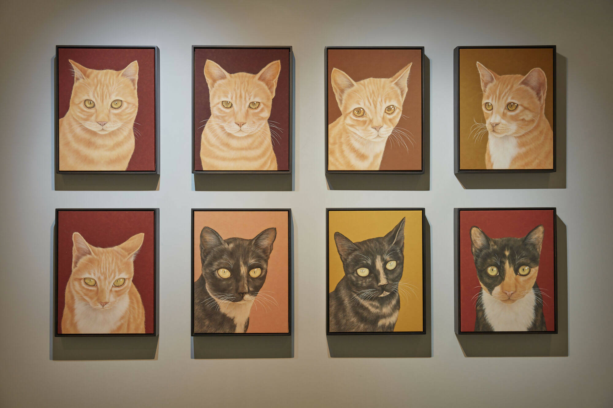 Captured in exquisite detail, the orange cat in this piece connects with the viewer through its amber-coloured eyes filled with curiosity and attentiveness. Its realistic velvety fur and tabby patterns were created with fine, precise lines, taking on a tangible quality that exudes warmth and reassurance. The artist encourages the audience to engage in a tranquil gaze with the subject, creating a liminal space between awareness and unconsciousness. The life-like rendering serves as a poignant reflection of the emotional nuances and expressions we encounter in the faces that populate our lives, making this piece not merely an object of aesthetic admiration but also a mirror of our shared human experience.