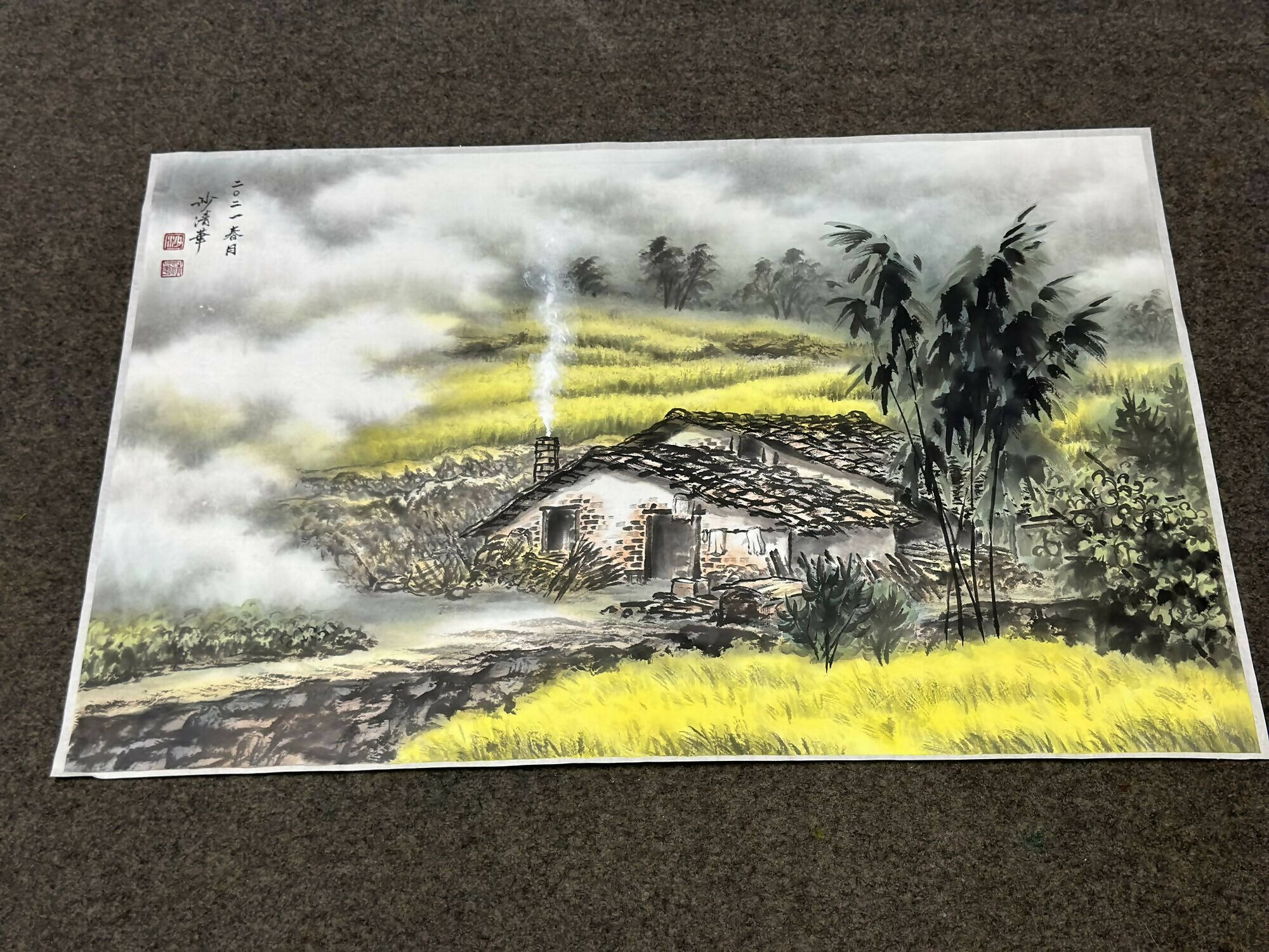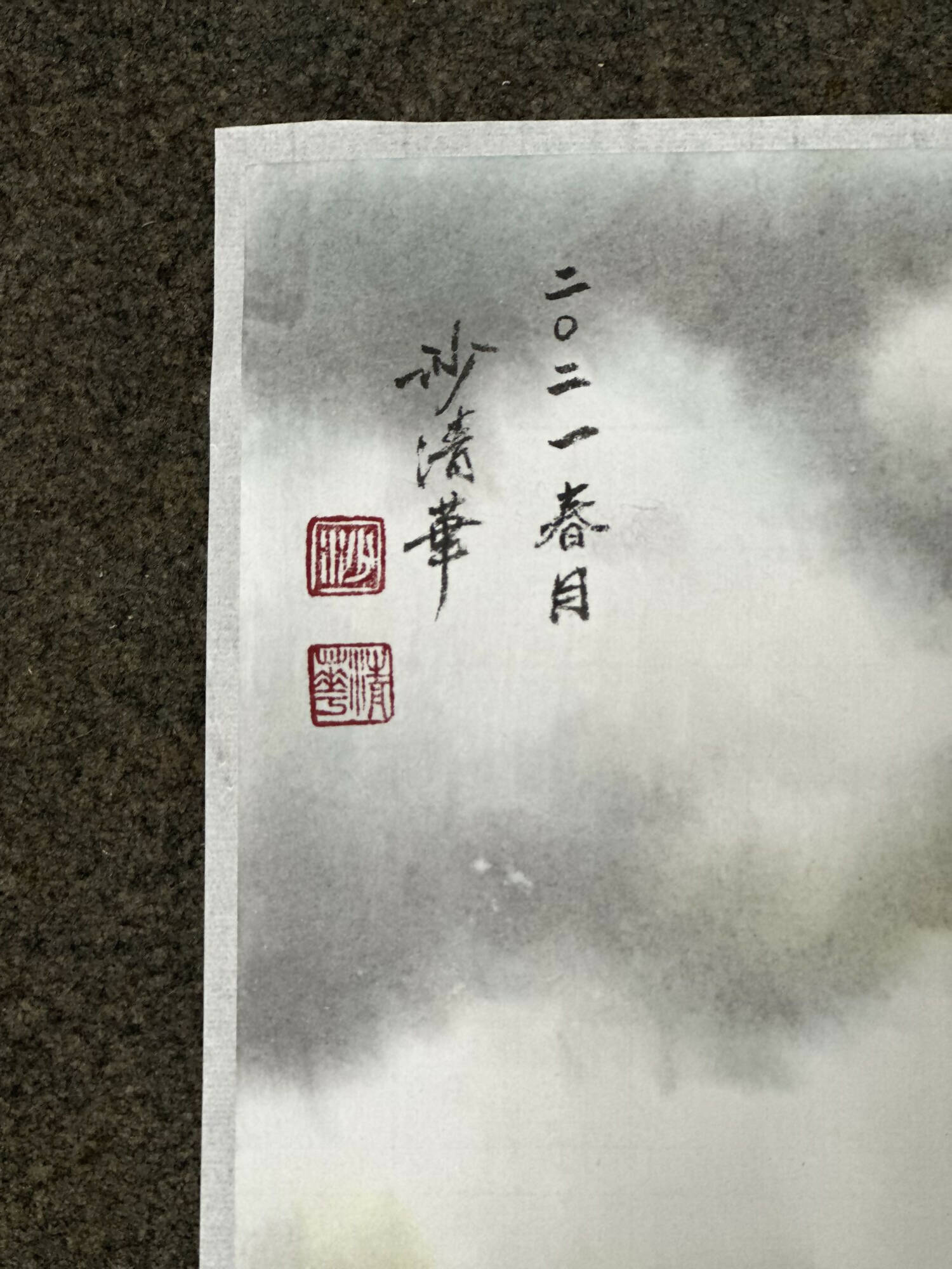 Signature: Hand-signed and personal seal of artist + year on upper left corner
