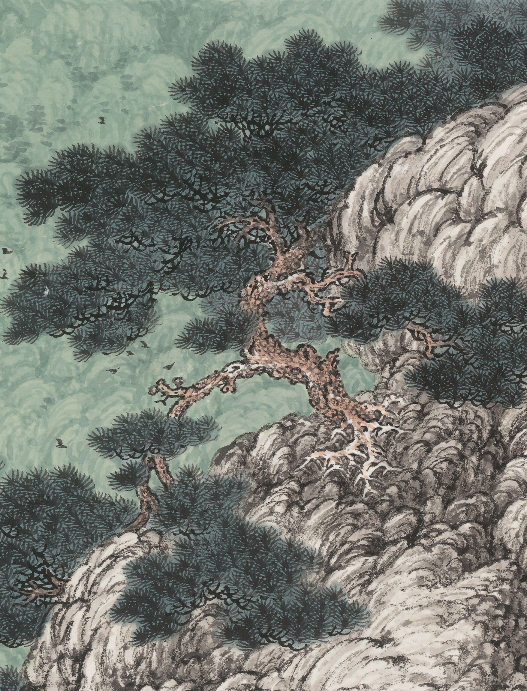 The enigmatic beauty of nature transcends words, and we can see this profound reverence for nature in Hou Xiantang's artistic realm.