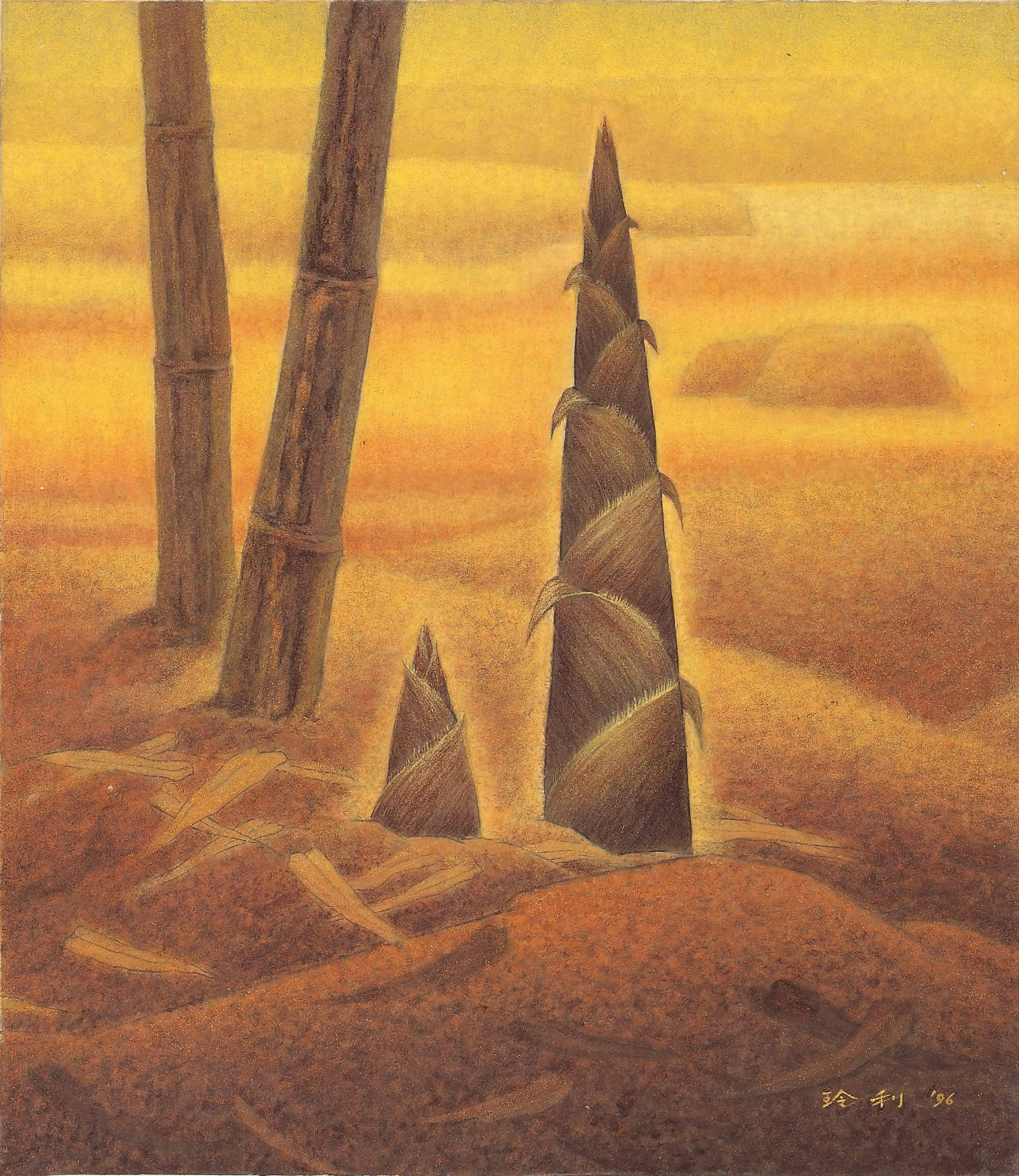 These bamboo shoots, in their sprouting moment yet captured for eternity, signify growth, renewal, and the perpetual dance of nature's cyclical energy.