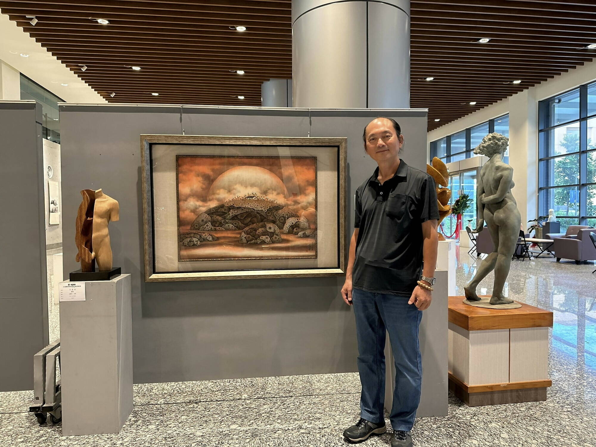 Anchoring this ethereal world are ancient rocks, their surreal textures mirroring the millennia-long weathering seen in "beehive rocks." The realistic depictions of hollow depressions on the rock's surface are achieved through meticulous and repetitive brushwork, which captures the essence of time's passage and hints at the myriad universes they hold.