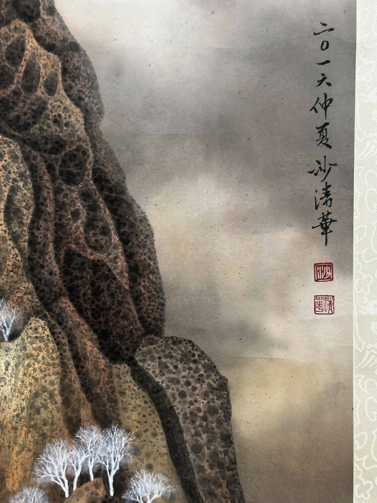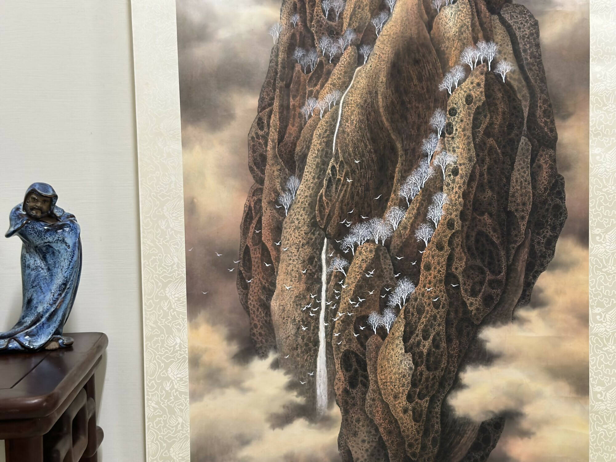 The "Undiscovered" series speaks volumes of the artist's mastery of brushwork, evident in the intricate rendition of ancient mountains and rocks.