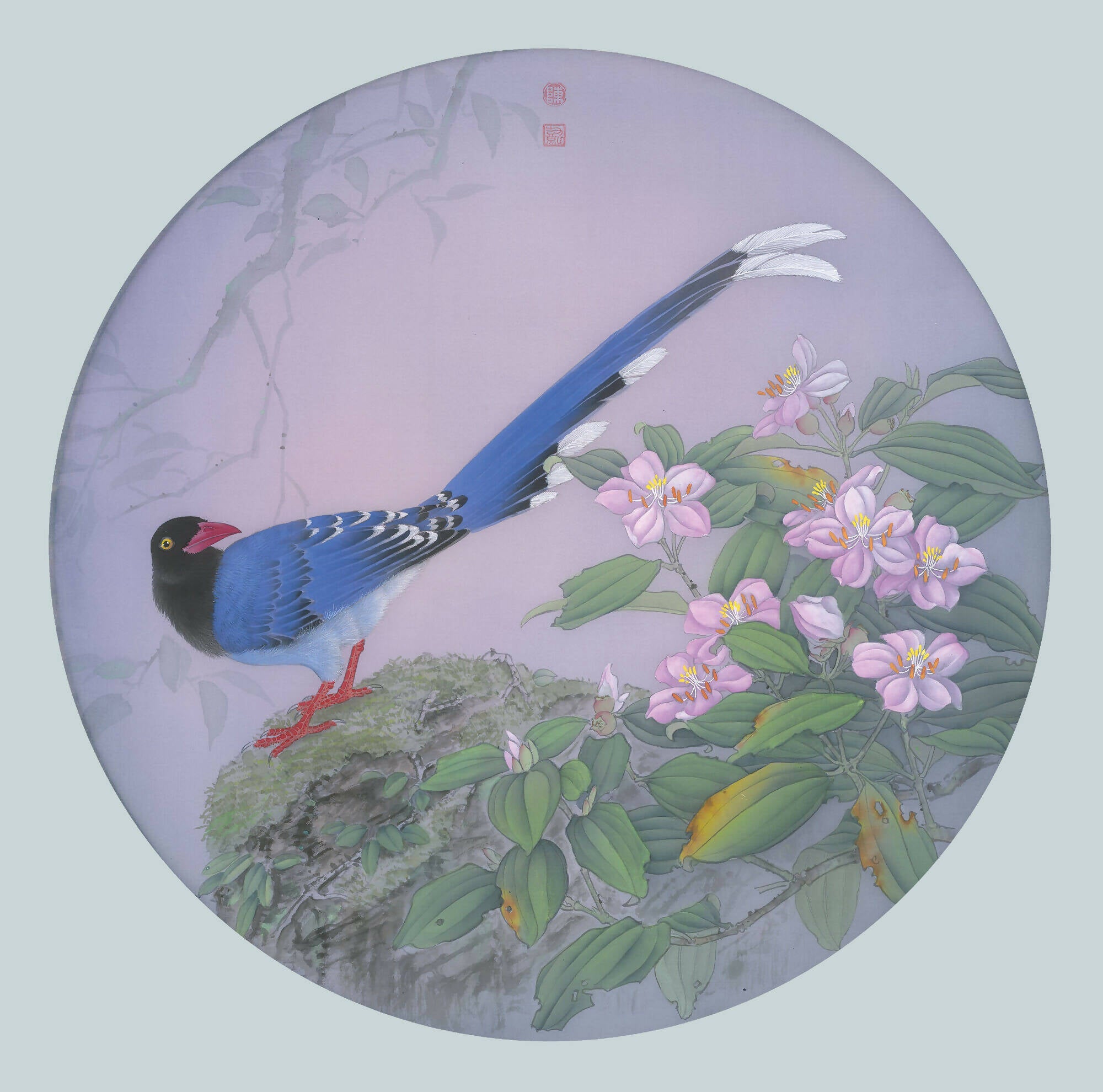 His artistic endeavors extend beyond mastering Gongbi's technique. Chen explores the expressive depths of this art form and broadens its horizons. He innovatively blends traditional Gongbi with diverse mediums: Eastern mineral pigments, Western water-based colors, and contemporary tools like fan-shaped brushes and spray guns. These additions enrich his color spectrum and accentuate the texture and detail of his creations.